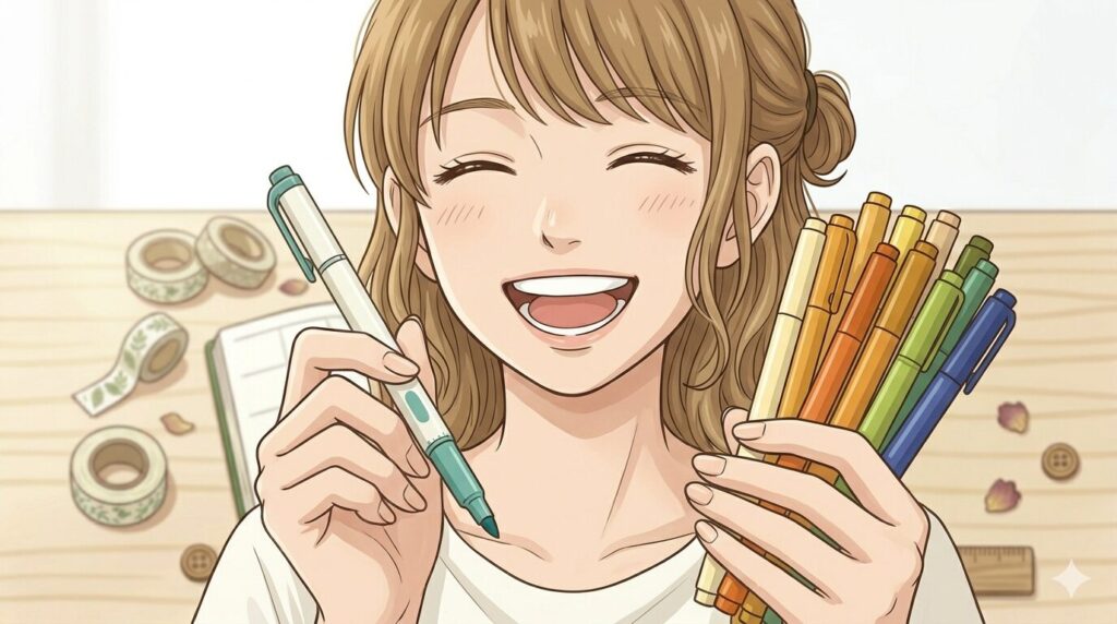 💬 ユーザーの声:「マイルドライナーが普通になって、普通の蛍光ペンだとチカチカするようになった」「1本100円だからつい集めたくなる。全35色制覇したら達成感がすごい」「手帳デコにはやさしさマイルドとナチュラルマイルドが今いちばん好き」